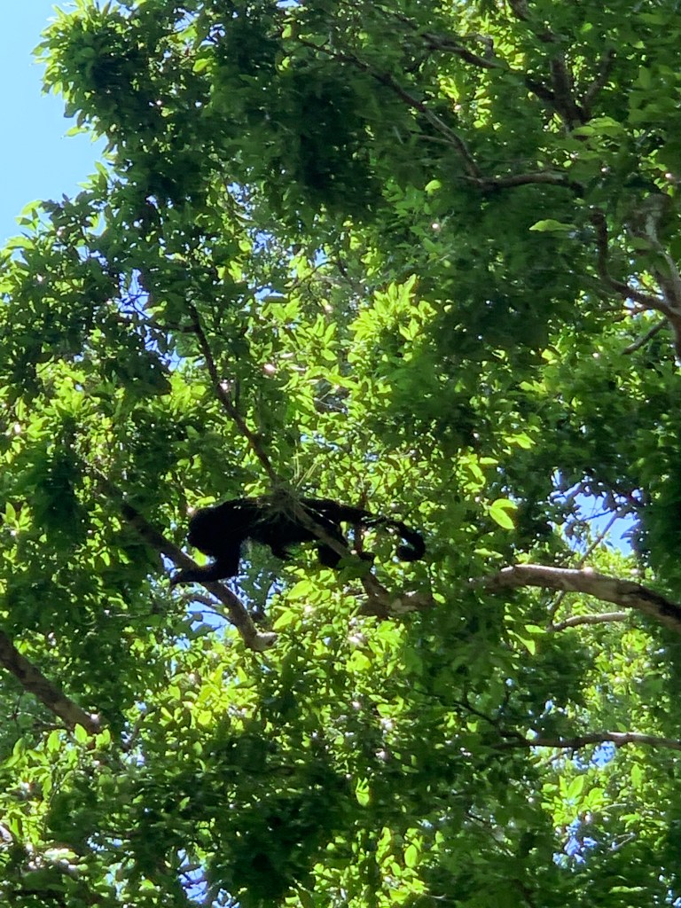 Une fois arrivé sur place, nous constatons que le parking est presque vide, nous sommes donc seuls à nous balader à travers cet immense site. Quelle chance ! Au détour d’un chemin, nous apercevons de l’eau (ou pas) tomber d’un arbre, en s’approchant, on constate qu’il s’agit là d’une famille de singes hurleurs essayant sans doute de nous faire fuir si on doit en croire les excréments qu’ils se sont appliqué à faire tomber à quelques centimètres de nous ! Nous nous sentons privilégié de pouvoir les observer dans leur milieu naturel, un moment mémorable.