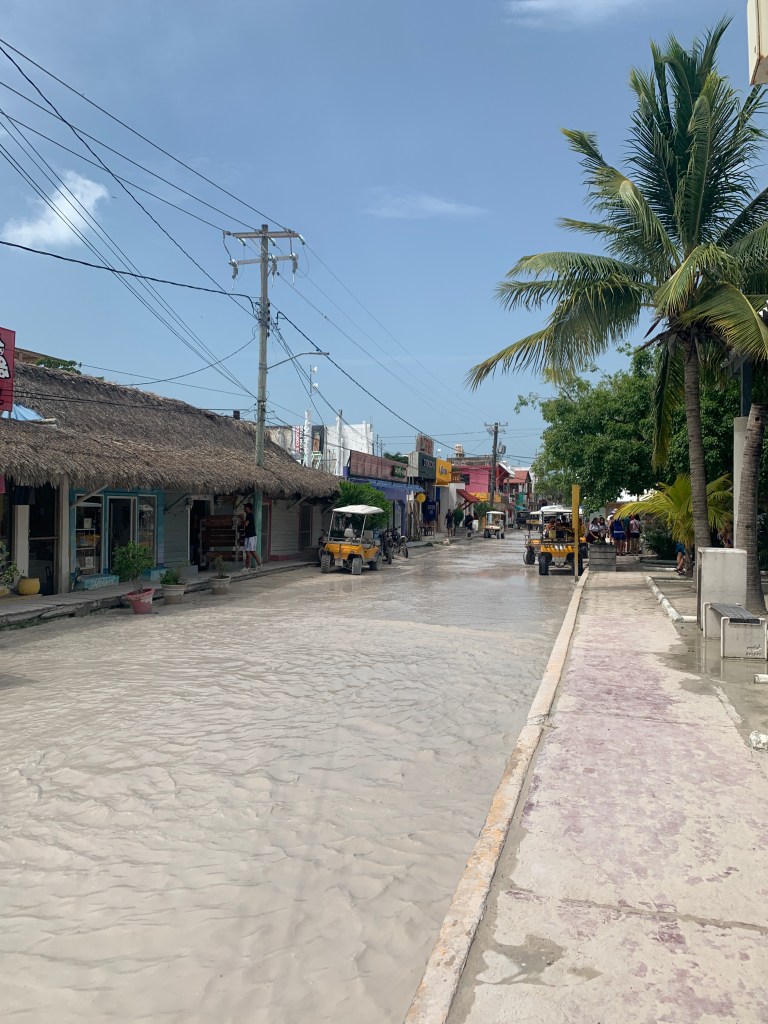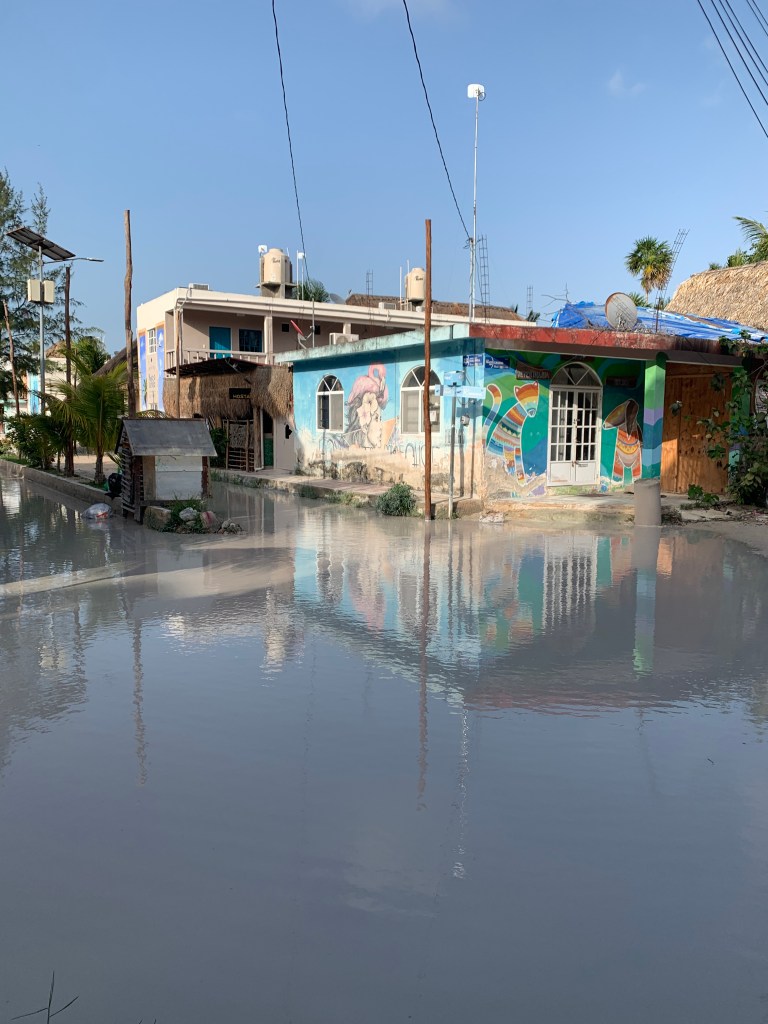 Le ferry qui vous conduit à Holbox se trouve à Chiquilà, un petit village où les habitants mettent à disposition leur parking privé en échange de quelques pesos. Un conseil, approchez-vous au plus près du port, les prix sont les mêmes ! Nous arrivons sur l’île après une traversée d’une vingtaine de minutes. A notre grande surprise, l’île est vraiment inondée à la suite de fortes pluies quelques jours auparavant. Préparez-vous à longer les trottoirs dans l’île. Ce n’est vraiment pas un problème en soi sauf pour une chose : la bioluminescence. Holbox est une île connue pour ce phénomène rare qui est observable de nuit à Punta Coco.